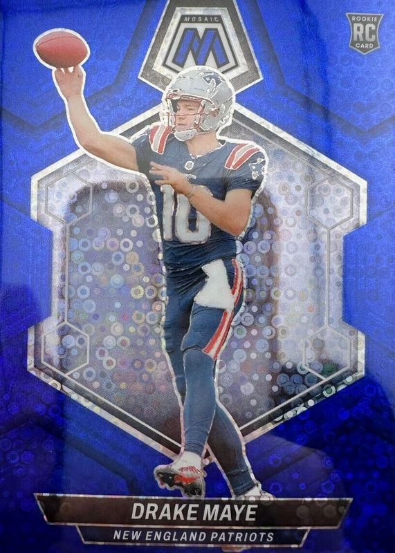 This card is 1 of 115 Drake Maye's card variations in the 2024 Mosaic set being tracked by Sports Card Investor, including Base, NFL Debut, Green, Mosaic, and NFL Debut - Green.