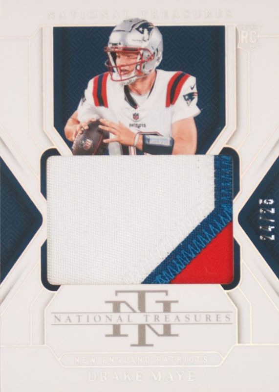 The Drake Maye 2024 National Treasures #208 Rookie Patches - Holo Silver /25 card in Raw condition has moved down -$300 (-14.3%) in the last 30 days and was last sold for $1,800.00 .