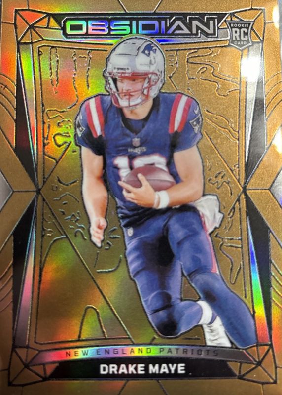 The Drake Maye 2024 Obsidian #132 Gold /10 Rookie card in Raw condition has not changed in price in the last 30 days and was last sold for $580.00 .