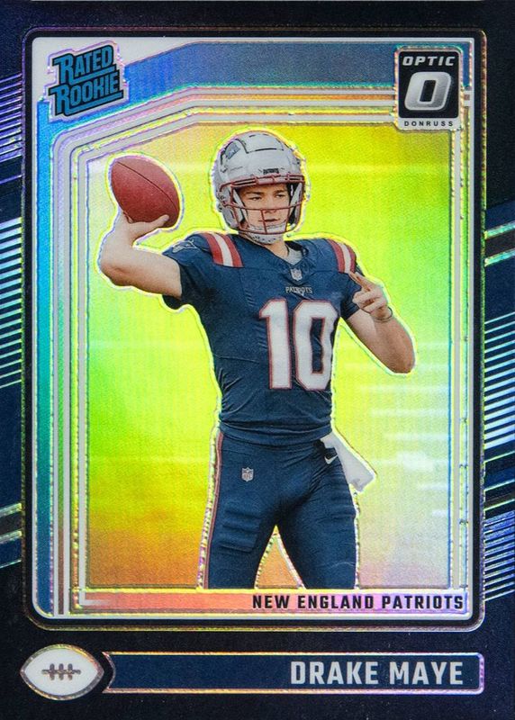 This card is 1 of 101 Drake Maye's card variations in the 2024 Optic set being tracked by Sports Card Investor, including Base, Blue Hyper, Blue Scope, Green Hyper, and Green Velocity.
