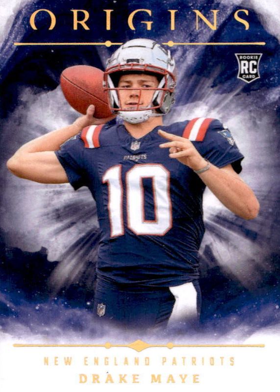 The Drake Maye 2024 Origins #145 Base Rookie card in Raw condition has moved up $10.00 (+48.2%) in the last 30 days and was last sold for $30.75 .