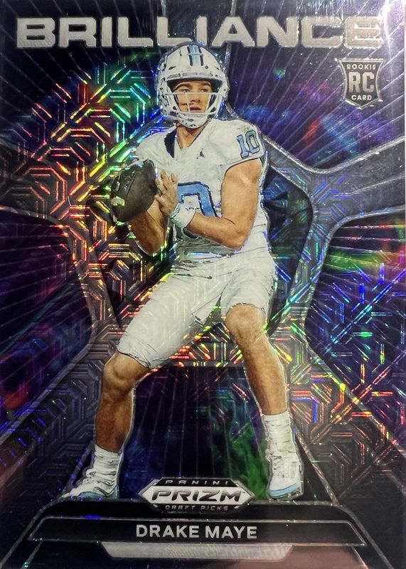 The Drake Maye 2024 Prizm Draft Picks #BR-DM Brilliance - Mojo /25 Rookie card in Raw condition has not changed in price in the last 30 days and was last sold for $65.00 .