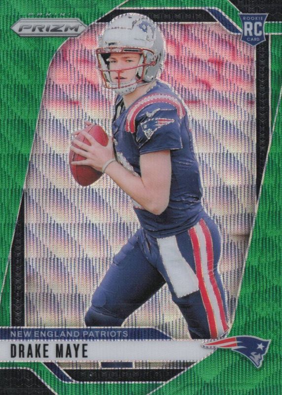 The Drake Maye 2024 Prizm #329 Green Wave Rookie card in Raw condition has moved up $18.50 (+55.2%) in the last 30 days and was last sold for $52.00 .