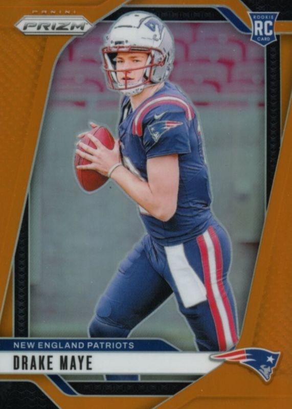The Drake Maye 2024 Prizm #329 Orange /249 Rookie card in Raw condition has moved up $96.50 (+39.6%) in the last 30 days and was last sold for $340.00 .
