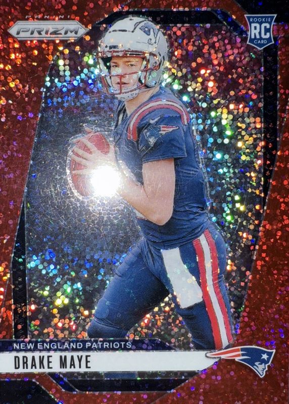 2024 Panini Prizm Drake Maye Red Sparkle Prizm #329 RC Rookie Patriots