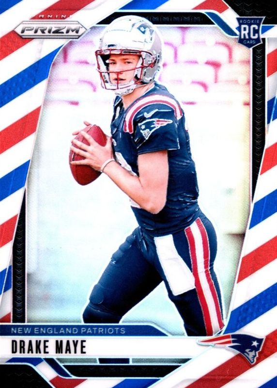 The Drake Maye 2024 Prizm #329 Red White Blue Rookie card in Raw condition has moved up $28.50 (+37.5%) in the last 30 days and was last sold for $104.50 .