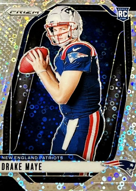 This card is 1 of 140 Drake Maye's card variations in the 2024 Prizm set being tracked by Sports Card Investor, including Base, Choice Blue Yellow Green, Choice Silver, Disco, and Green.
