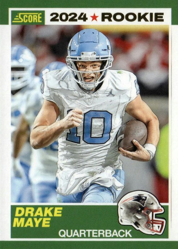 The Drake Maye 2024 Score #3 35th Anniversary Rookie - Gold card in Raw condition has moved down -$1.00 (-50.0%) in the last 30 days and was last sold for $1.00 .