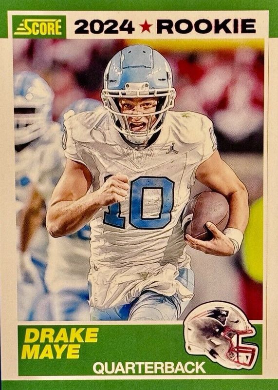 The Drake Maye 2024 Score #3 35th Anniversary Rookie - Red card in Raw condition has moved up $0.75 (+50.0%) in the last 30 days and was last sold for $2.25 .