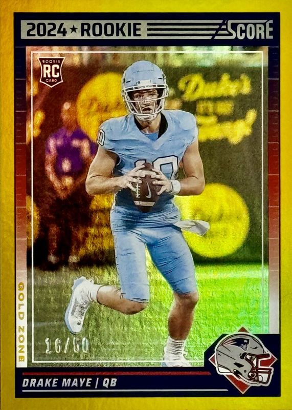 2024 Score Gold Zone #303 -Drake Maye RC Gold /50. -Patriots
