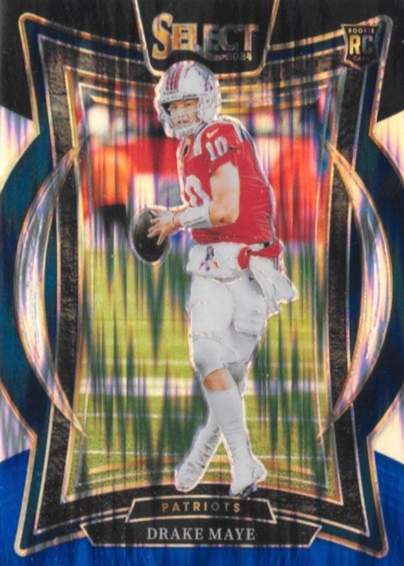 The Drake Maye 2024 Select #27 Concourse Black & Blue Shock Rookie card in Raw condition has moved down -$7.45 (-41.4%) in the last 30 days and was last sold for $10.55 .