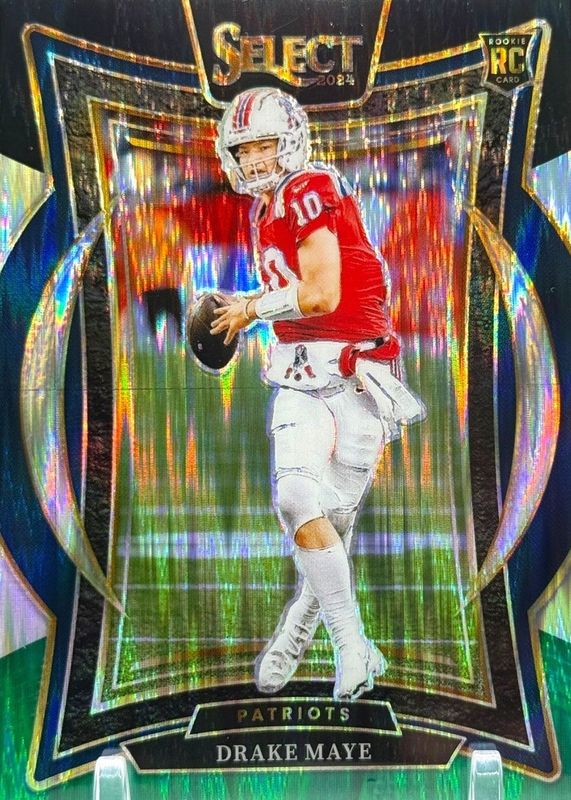 The Drake Maye 2024 Select #27 Concourse Black & Green Shock Rookie card in Raw condition has moved down -$9.00 (-43.9%) in the last 30 days and was last sold for $11.50 .