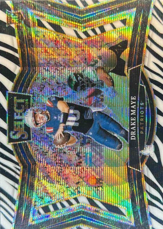 Drake Maye 2024 Panini Select - Field Level Zebra Prizm (SSP, RC)