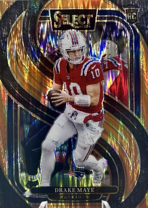 The Drake Maye 2024 Select #113 Premier Level Orange Shock /399 Rookie card in Raw condition has moved up $89.50 (+112%) in the last 30 days and was last sold for $169.50 .
