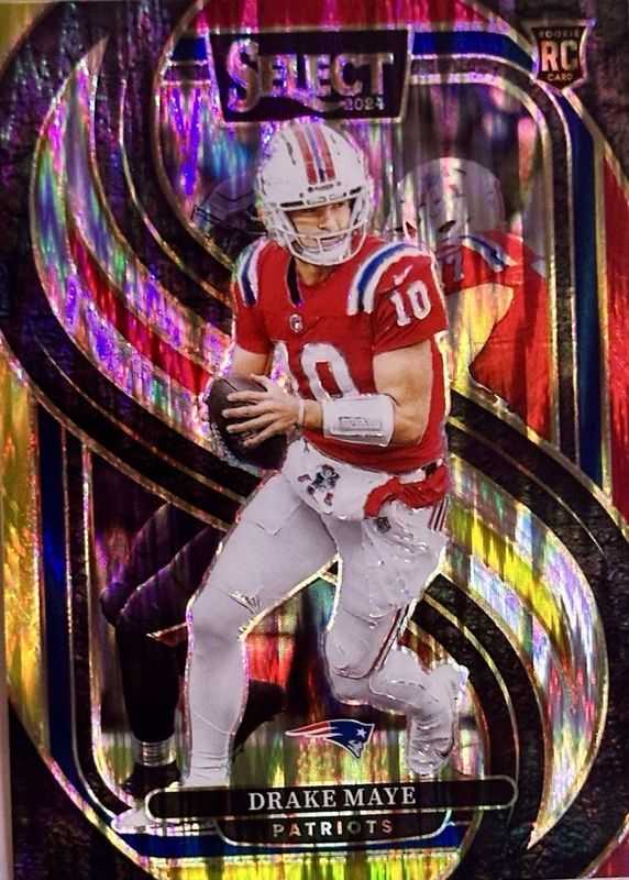 The Drake Maye 2024 Select #113 Premier Level Red & Yellow Shock Rookie card in Raw condition has moved up $2.42 (+20.9%) in the last 30 days and was last sold for $14.00 .