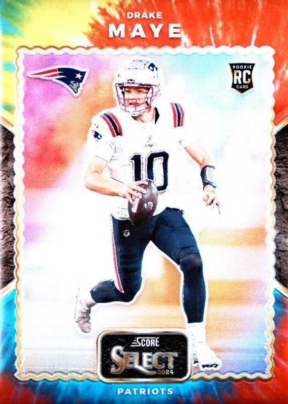 Best Prices Available For Sale of Drake Maye 2024 Select #22 Score Select Throwback - Tie-Dye /25