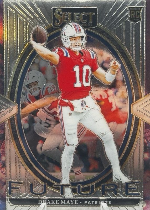 The Drake Maye 2024 Select #5 Select Future Rookie card in Raw condition has moved up $4.04 (+200%) in the last 30 days and was last sold for $6.06 .