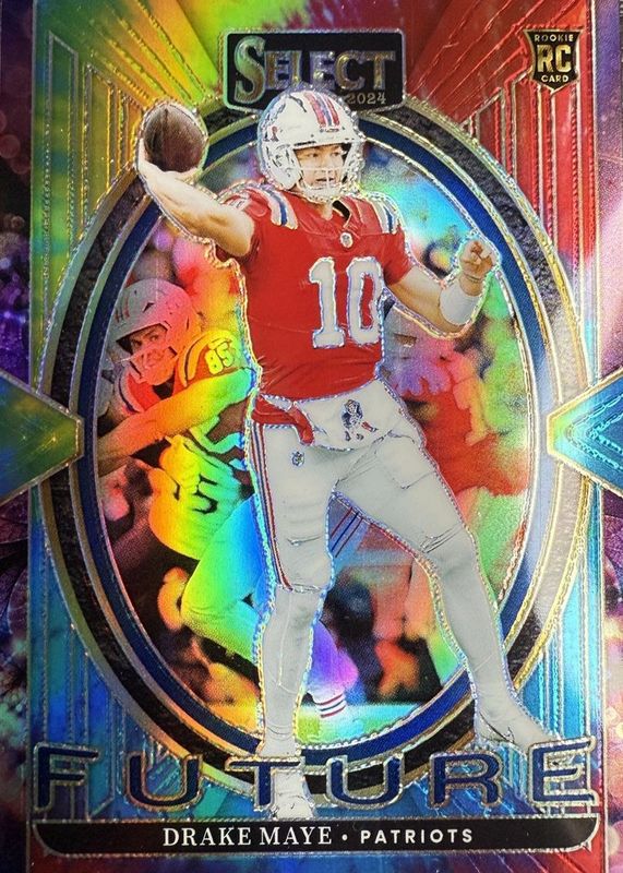 The Drake Maye 2024 Select #5 Select Future - Tie-Dye /25 Rookie card in Raw condition has not changed in price in the last 30 days and was last sold for $426.51 .