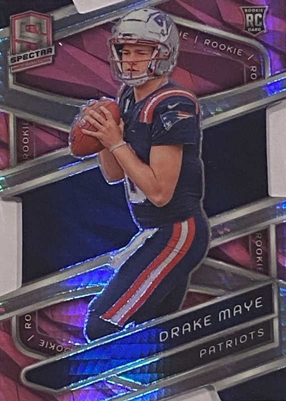 The Drake Maye 2024 Spectra #113 Neon Pink Die-Cut /20 Rookie card in Raw condition has not changed in price in the last 30 days and was last sold for $155.00 .