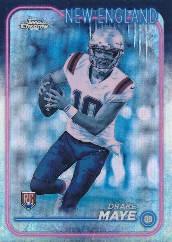 This card is 1 of 61 Drake Maye's card variations in the 2024 Topps Chrome set being tracked by Sports Card Investor, including Base, Camo Wave Refractor, Negative Refractor, Pink Refractor, and Prism Refractor.