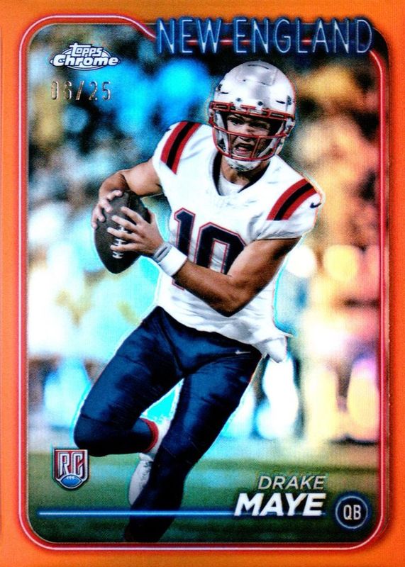 Drake Maye 2024 Topps Chrome #203 Orange Refractor /25 Rookie RAW Price Guide