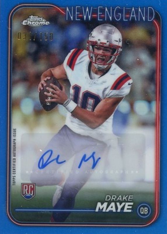 2024 Topps Chrome - Rookie Autographs Drake Maye RC Blue Refractor FOP 1/150