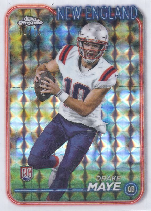 Auctions Ending Soon for Drake Maye 2024 Topps Chrome #203 White Geometric Refractor /15 Rookie RAW