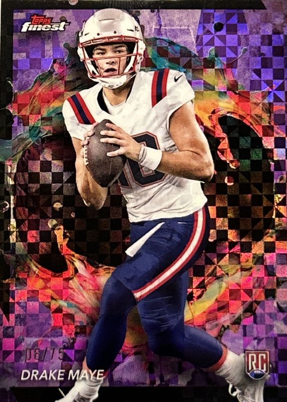 2024 Topps Finest Drake Maye #248 Purple Checkerboard Refractor /75 Patriot RC