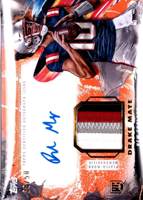 Drake Maye Orange RPA /50 2024 Topps Inception Patriots Patch Auto Provenance