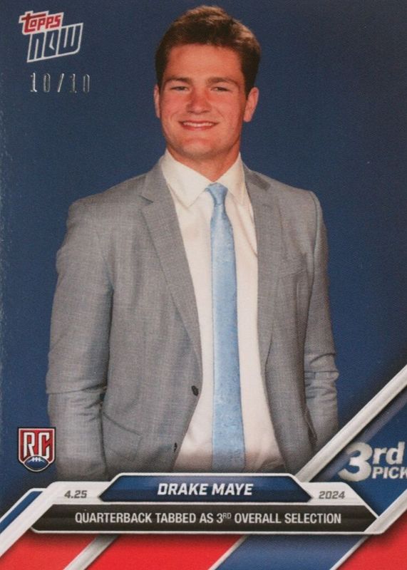 Drake Maye 2024 Topps Now Draft #D-3 Red /10 Rookie RAW Price Guide