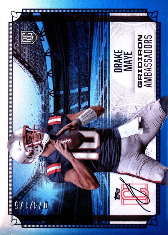 Drake Maye 2024 Topps Signature Class #GA-3 Gridiron Ambassadors - Indigo /175 Rookie RAW Price Guide