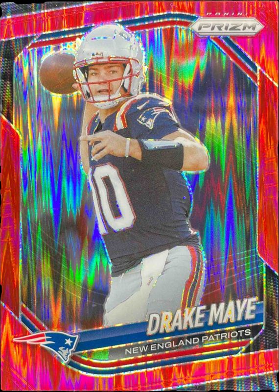 The Drake Maye 2025 Prizm #165 Red Flash card is 1 of 102 Drake Maye's card variations in the 2025 Prizm set being tracked by Sports Card Investor, including Base, Choice Blue Yellow Green, Green Flash, Green Ice, and Green Wave.
