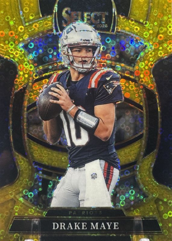 The Drake Maye 2025 Select #80 Concourse Gold Disco /10 card in Raw condition has not changed in price in the last 30 days and was last sold for $360.00 .