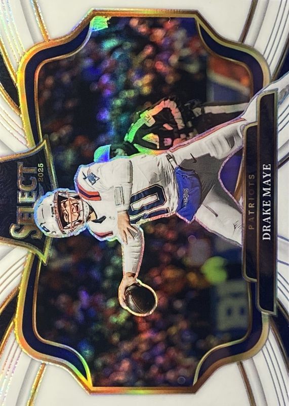 This card is 1 of 109 Drake Maye's card variations in the 2025 Select set being tracked by Sports Card Investor, including Concourse, Field Level, Concourse Black & Blue Shock, Concourse Black & Gold Shock, and Concourse Black & Green Shock.
