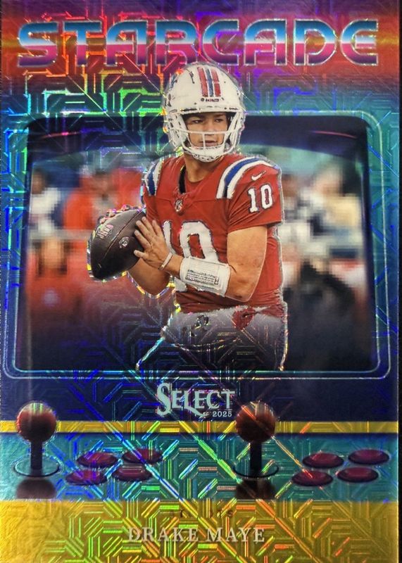 The Drake Maye 2025 Select #8 Starcade - Gold /10 card in Raw condition has not changed in price in the last 30 days and was last sold for $272.00 .