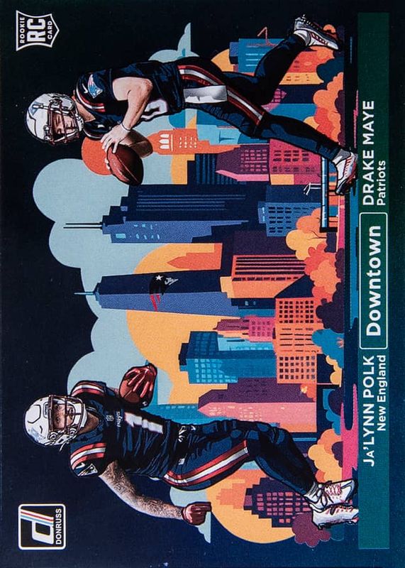 This card is 1 of 3 Drake Maye / Ja'Lynn Polk's card variations in the 2024 Donruss set being tracked by Sports Card Investor, including Downtown Horizontal /(SSP), and Downtown Horizontal - Gold /10.