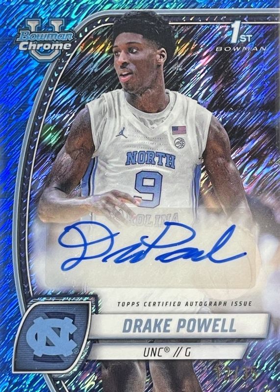 This card is 1 of 19 Drake Powell's card variations in the 2024 Bowman Chrome University set being tracked by Sports Card Investor, including Prospect Auto (1st), Prospect Auto - Black Wave Refractor (1st), Prospect Auto - Green Shimmer Refractor (1st), Prospect Auto - Refractor (1st), and Prospect Auto - Stealth Refractor (1st).