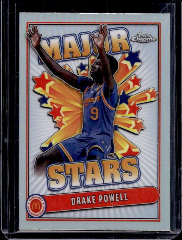 The Drake Powell 2024 Topps Chrome McDonald's All-American #SES-DRP Major Stars - Refractor card is 1 of 112 Drake Powell's card variations in the 2024 Topps Chrome McDonald's All-American set being tracked by Sports Card Investor, including #81 Base, #31 Base, #31 Blue RayWave Refractor, #81 Blue RayWave Refractor, and #31 McDonald's Logo Refractor.