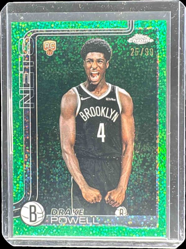 The Drake Powell 2025 Topps Chrome #272 Image Variation - Green Speckle Refractor /99 Rookie card in Raw condition has not changed in price in the last 30 days and was last sold for $15.50 .