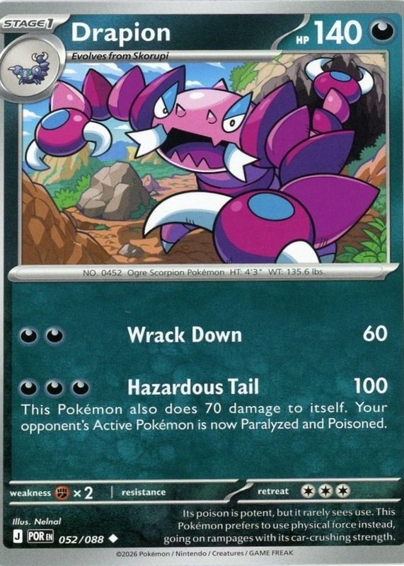 Drapion 2026 Mega Evolution: Perfect Order #52/88 Base RAW TCG (LIGHTLY PLAYED) Price Guide