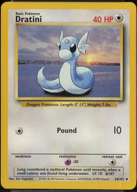 DRATINI Pokemon Card Base Set 26/102 WOTC 1999 Unlimited LP-Near Mint