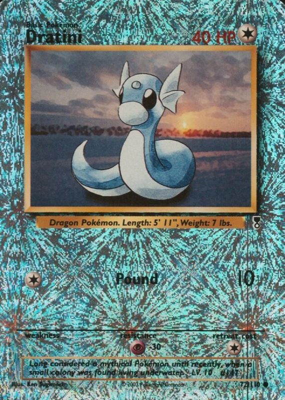 The Dratini 2002 Legendary Collection #72 Reverse Holo card in Raw TCG (Near Mint) condition has not changed in price in the last 30 days and was last sold for $80.96 .