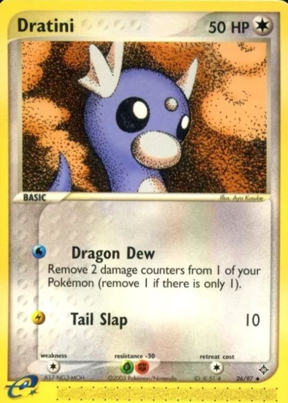 The Dratini 2003 EX: Dragon #26/97 Base card in Raw TCG (Near Mint) condition has moved up $1.73 (+21.7%) in the last 30 days and was last sold for $9.72 .
