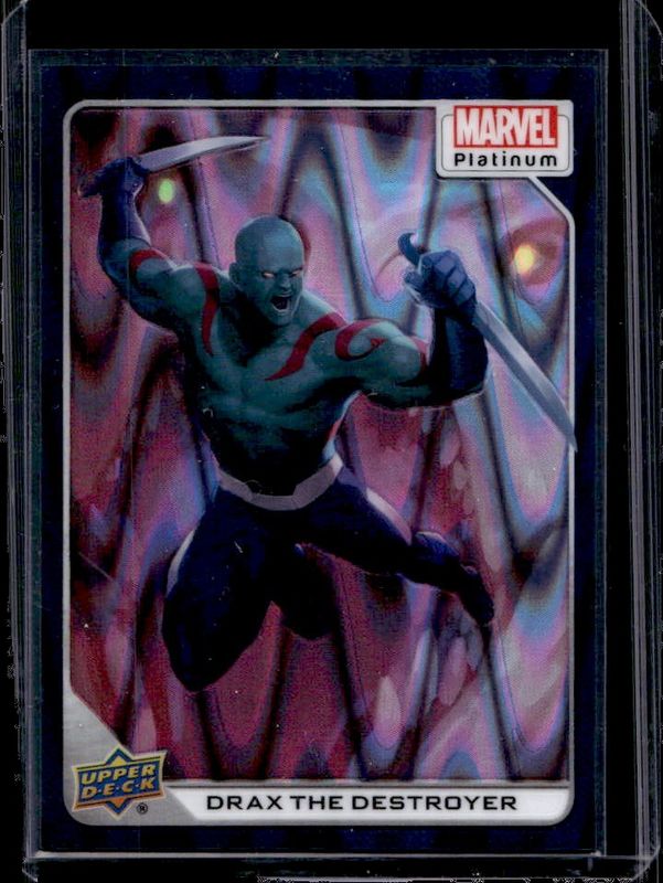 The Drax The Destroyer 2023 Upper Deck Marvel Platinum #80 Teal Wave /799 card is 1 of 71 Drax The Destroyer's card variations in the 2023 Upper Deck Marvel Platinum set being tracked by Sports Card Investor, including #142 Base, #80 Base, #142 Black Rainbow, #80 Black Rainbow, and #142 Blue Rainbow.