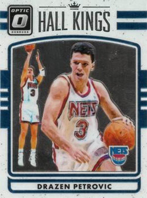 The Drazen Petrovic 2016 Optic #25 Hall Kings card is 1 of 11 Drazen Petrovic's card variations in the 2016 Optic set being tracked by Sports Card Investor, including Hall Kings - Holo, Hall Kings - Purple, Hall Kings - Orange /199, Hall Kings - Red /99, and Hall Kings - Blue /49.