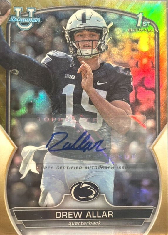 Auctions Ending Soon for Drew Allar 2022 Bowman Chrome University #59 Prospect Auto - Gold Refractor /50 (1st) RAW
