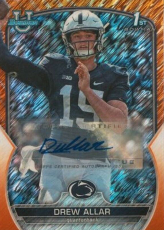 Auctions Ending Soon for Drew Allar 2022 Bowman Chrome University #59 Prospect Auto - Orange Shimmer Refractor /25 (1st) RAW