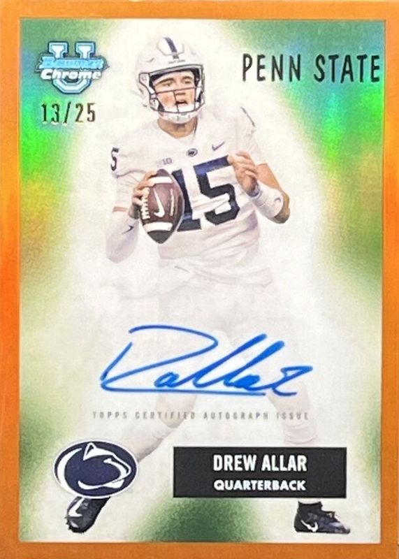 2023 Bowman U University Chrome DREW ALLAR 1955 Orange SP Auto /25 PENN STATE!