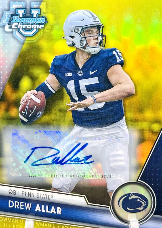 2023 Bowman Chrome U #113 Drew Allar Yellow Refractor Auto /75 Penn State