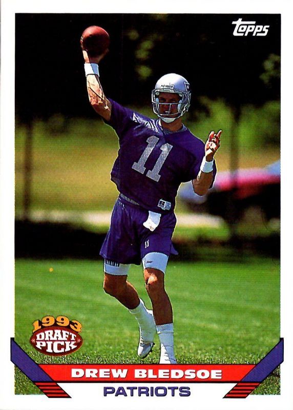 The Drew Bledsoe 1993 Topps #130 Base Rookie card in Raw condition has moved up $0.80 (+80.8%) in the last 30 days and was last sold for $1.79 .